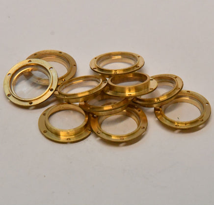 Brass, flanged port hole with glazed glass. 6 holes - 16x20mm - package of 10
