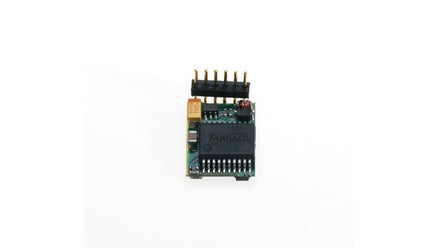 This is a small digital decoder for the diminutive H0e and N locomotives with plug strips into which the six-pin NEM-651-type interface fits. It understands the DCC system language (14, 28, 128 speed levels), but can be operated with conventional analog transformers. Identification takes place automatically.