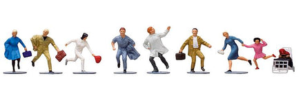 Set of 8 'travelers in a hurry with luggage